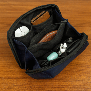 Keep your everyday tech essentials neatly organized and protected with the Multi-Utility Tech Organizer Pouch. Designed with a sleek navy-blue exterior and a soft, water-resistant build, this pouch offers a professional and stylish way to store cables, chargers, earbuds, USB drives, and even small accessories like wallets or pens. The zip closure ensures everything stays secure, making it ideal for travel or everyday commuting.