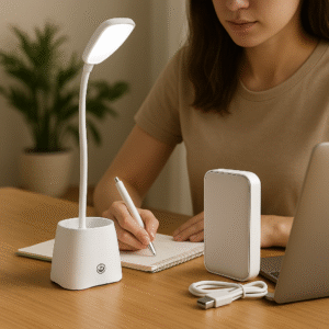 Illuminate your workspace with precision and elegance using the GlowFlex Rechargeable LED Desk Lamp—a compact, minimalist lighting solution designed for modern lifestyles. With its sleek matte finish, soft-touch button, and flexible gooseneck, this lamp offers both aesthetic appeal and functional brilliance, making it ideal for desks, bedside tables, and study nooks.