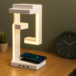 Redefine functionality with futuristic elegance through LumoCharge, a revolutionary LED desk lamp that doubles as a wireless charger. Designed with a modern, sculptural frame, this lamp brings together ambient lighting and smart utility in one compact, sleek form—perfect for contemporary workspaces, nightstands, or minimalist interiors. The warm white light gently diffuses through its geometric arms, creating a soothing, glare-free illumination ideal for late-night productivity or relaxing bedside reading.