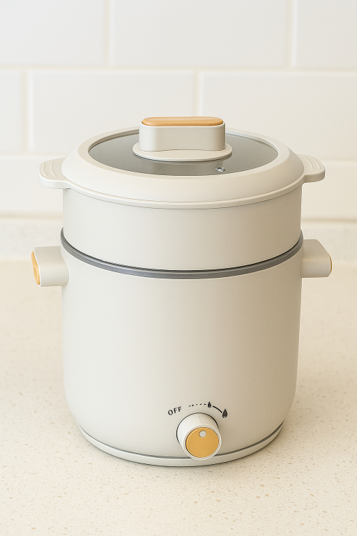 Equipped with dual heat settings—low (300W) and high (600W)—it allows you to control the temperature based on what you’re cooking, ensuring perfect results every time. From boiling eggs and noodles to steaming corn or dumplings and preparing soups or curries, the multi cooker handles it all. The “steam above, cook below” feature lets you multitask efficiently, with a steamer tray on top and the main pot below, saving time and energy.