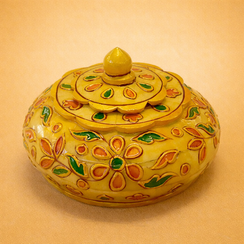 Compact yet elegant, this handcrafted box is perfect for storing jewellery, keepsakes, coins, or small valuables, while also serving as a beautiful décor accent. Its unique material, fine craftsmanship, and cultural significance make it an excellent choice for luxury gifting, festive occasions, and collectible décor.