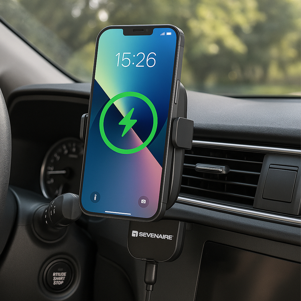 The CH07 Wireless Car Charger from Sevenaire is the ultimate solution for on-the-go charging, combining innovative technology with driver convenience. Designed with auto-clamping arms, this charger securely grips your smartphone once placed, ensuring stability even on bumpy roads. With its intelligent sensing mechanism, you can dock and undock your phone effortlessly with a single hand—making it the perfect companion for navigation, calls, or music control while driving.