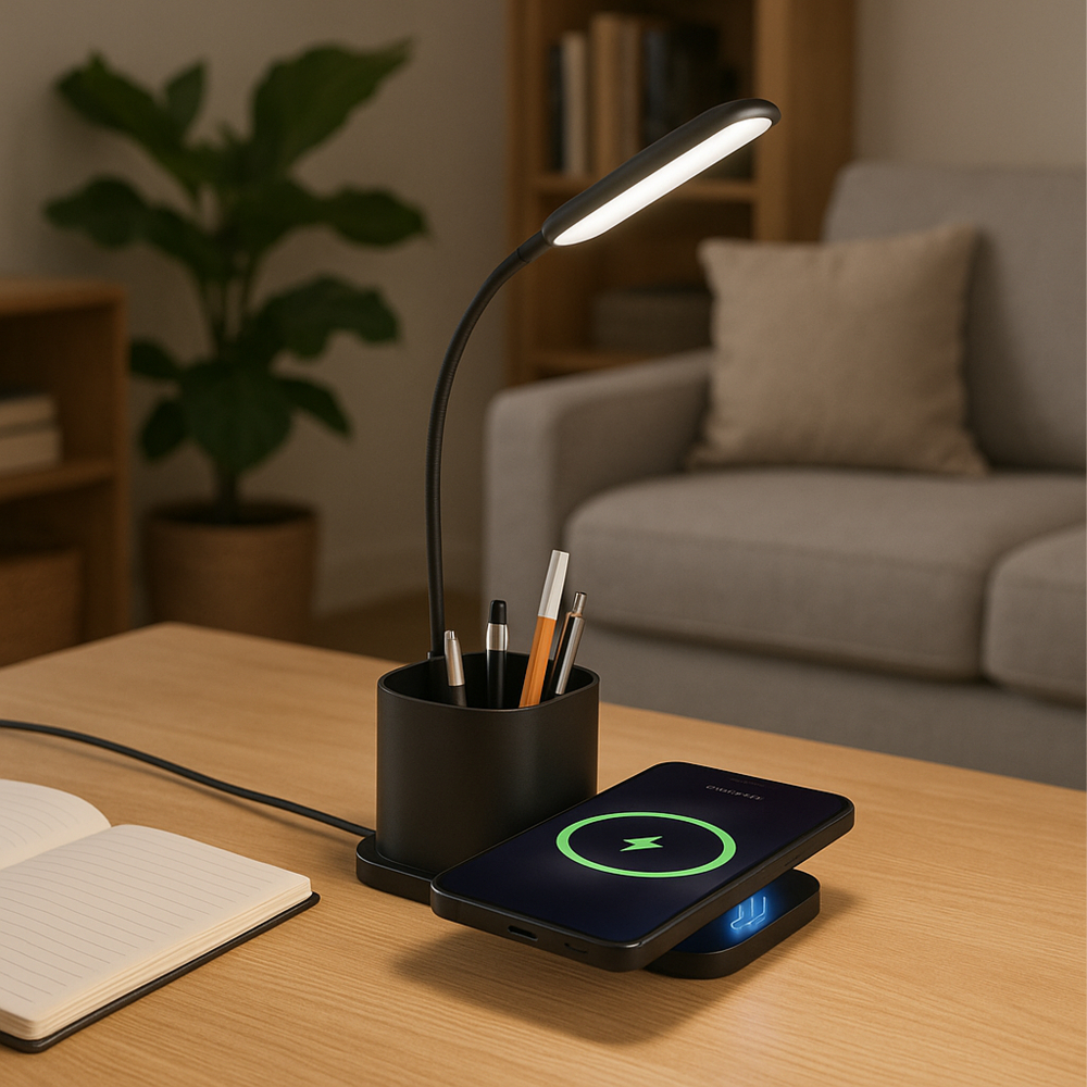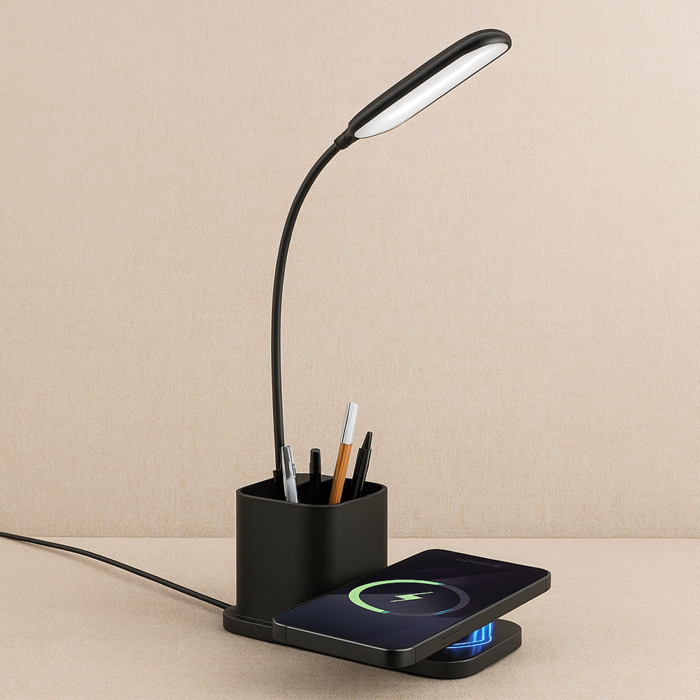 With a 15W wireless charging pad discreetly embedded in the base, your workspace stays clutter-free, cable-free, and effortlessly powered. Drop your phone, light your focus — no distractions, no compromises.