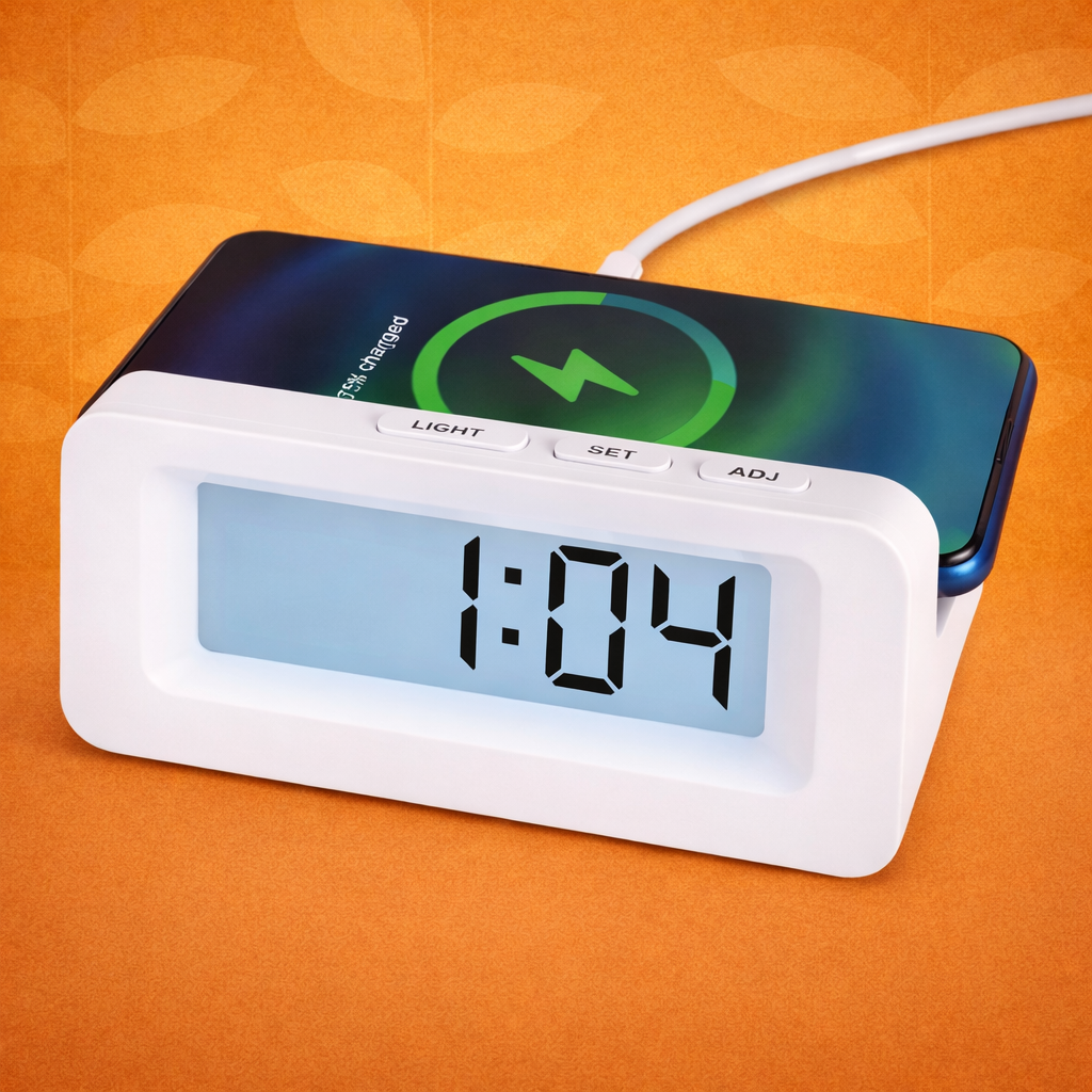 Upgrade your workspace or bedside table with this sleek digital clock featuring a powerful 10W wireless charging pad. Designed for convenience and modern living, it combines timekeeping with seamless smartphone charging in one compact device.