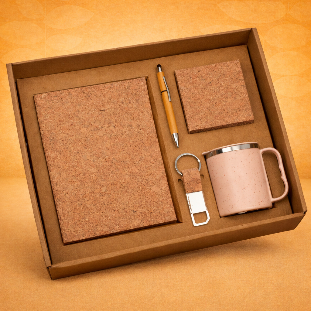 Crafted with natural cork textures and minimal aesthetics, this set reflects sustainability without compromising on sophistication — perfect for eco-conscious brands and organizations.