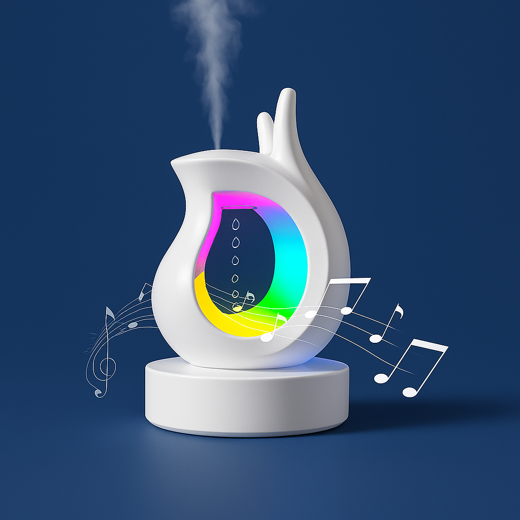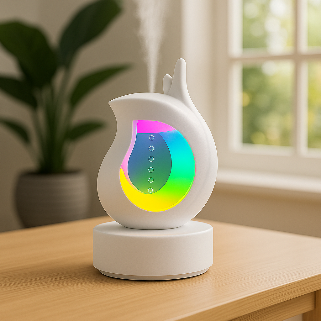 Transform your space into a tranquil retreat with the LumiMist Aura Diffuser, a beautifully crafted aromatherapy essential that fuses modern design with ambient wellness. Its elegant flame-like silhouette, finished in pristine matte white, makes it a stylish accent for your home or office decor. The heart of the design features a vibrant LED-lit water droplet that cycles through a full spectrum of soothing colors—creating an atmosphere of calm, clarity, or cheerfulness based on your mood.