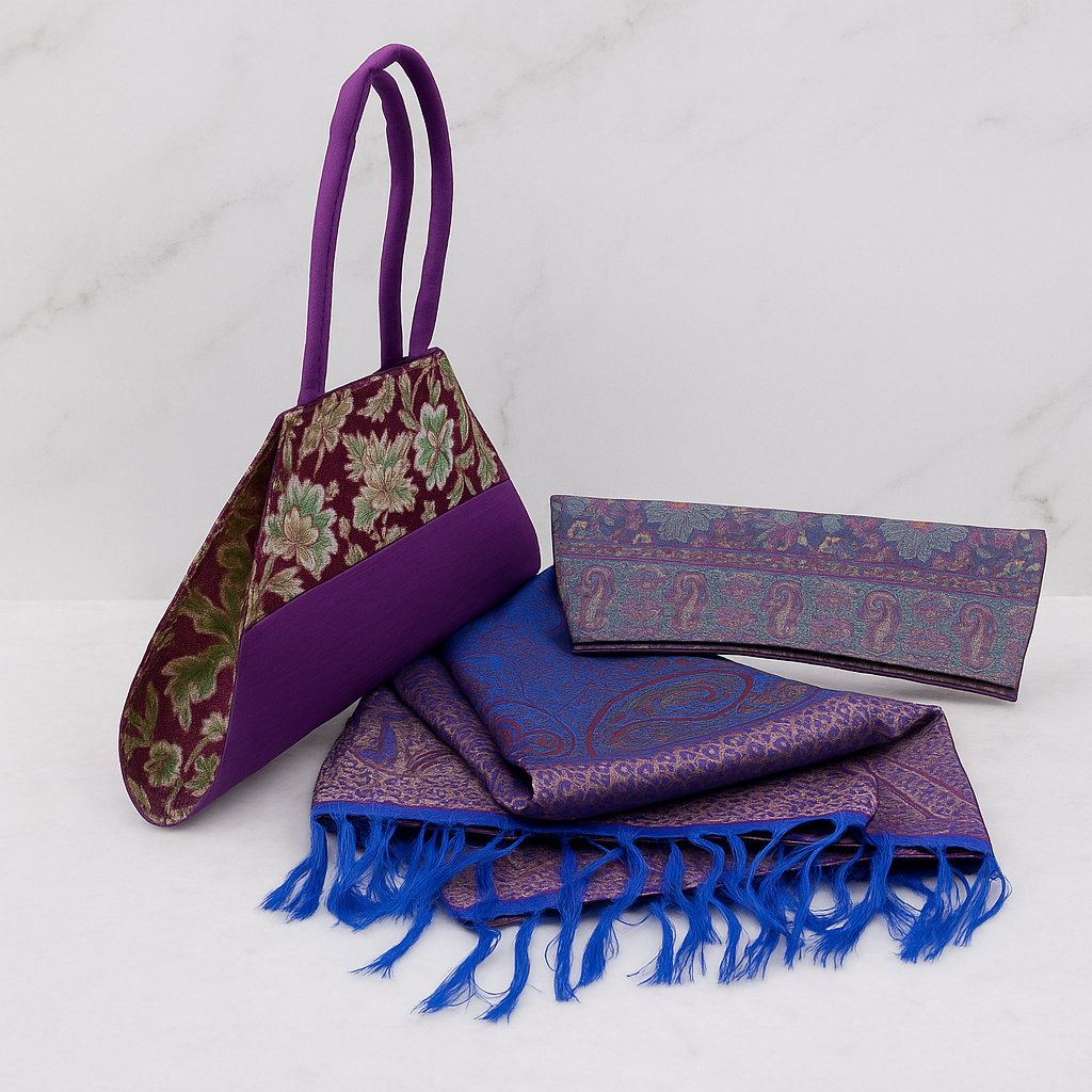 Luxury Collection – Handcrafted Banarasi Gift Set (Bag, Clutch & Dupatta)