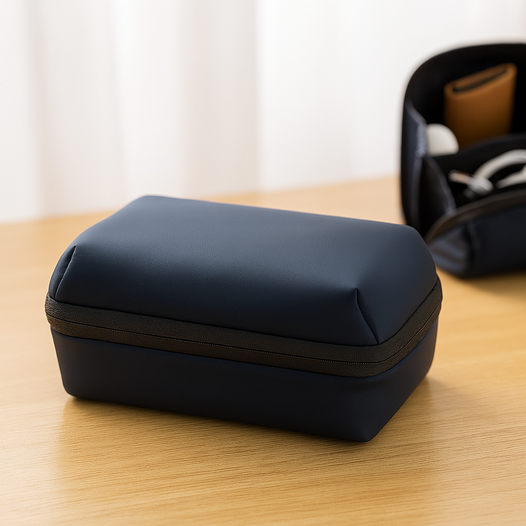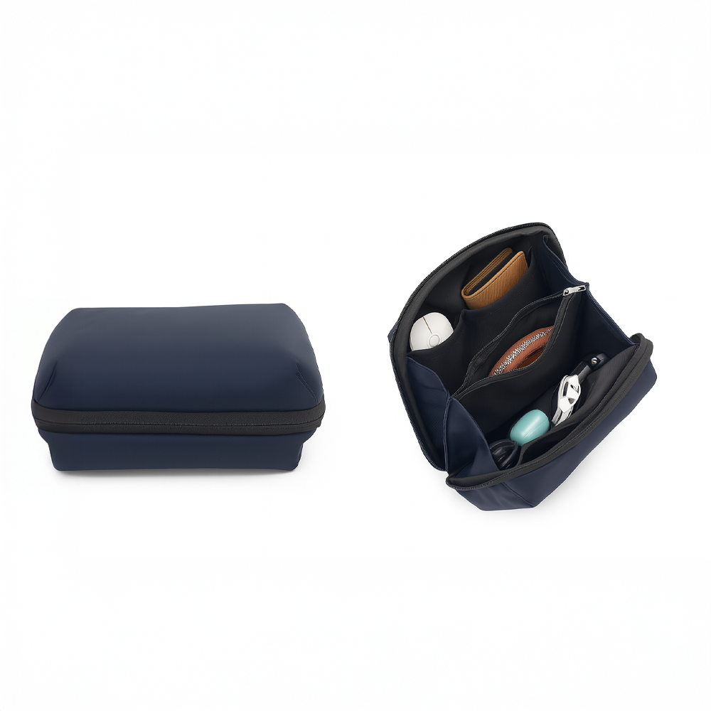 Its compact form doesn’t compromise on storage. It fits comfortably in backpacks, tote bags, or even laptop sleeves without adding bulk. Made from premium materials, the pouch combines durability with minimalist aesthetics, making it an ideal gift or corporate accessory.