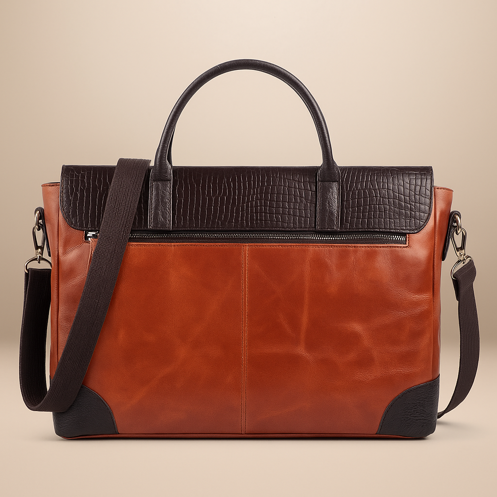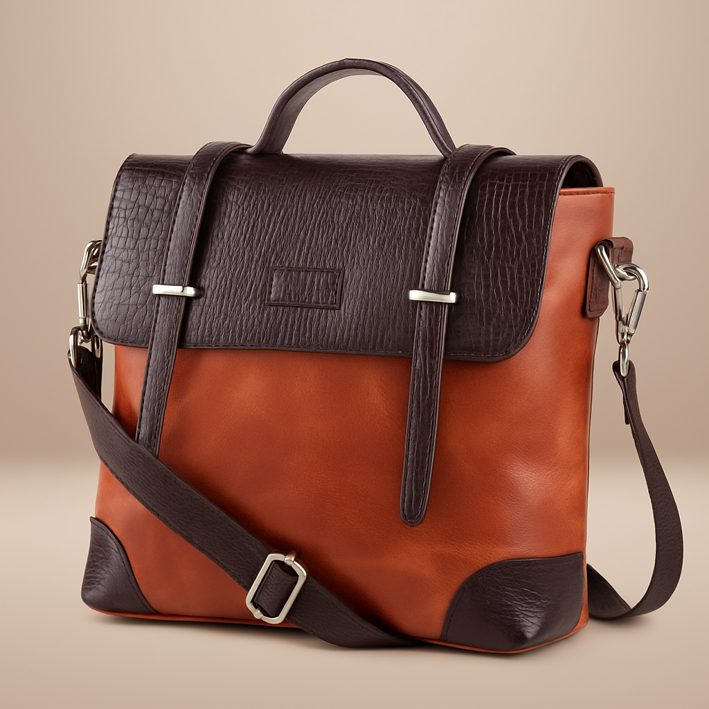 Crafted for the modern professional with a taste for heritage design, the Vintage Luxe Leather Satchel blends timeless aesthetics with practical functionality. Featuring a rich dual-tone palette of chestnut brown and deep espresso, this bag exudes a classic charm that never goes out of style. The structured silhouette is enhanced by a textured top flap and reinforced corners, delivering both durability and elegance.