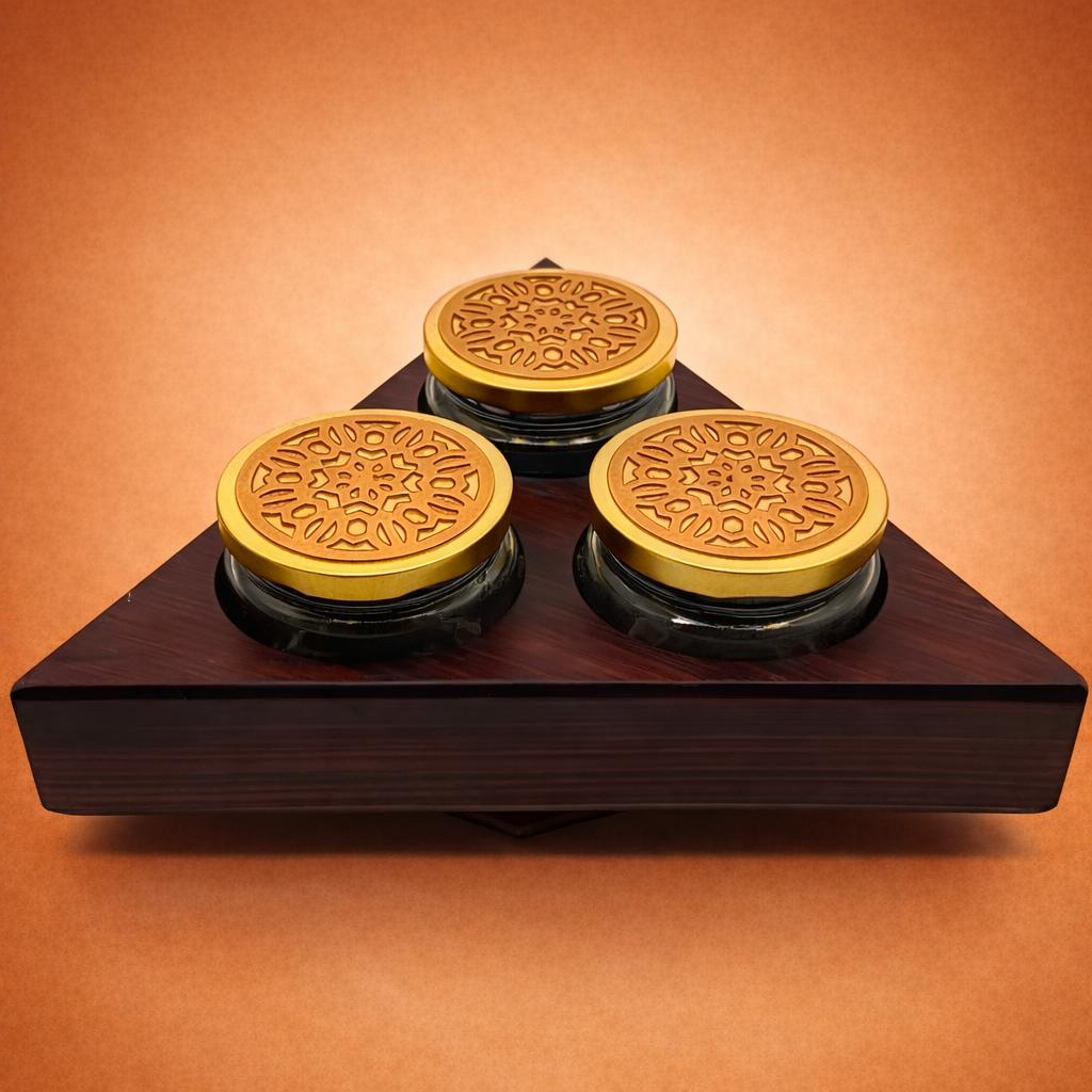 Wooden 3 Jar Rotator in Premium Box – Holi Hampers