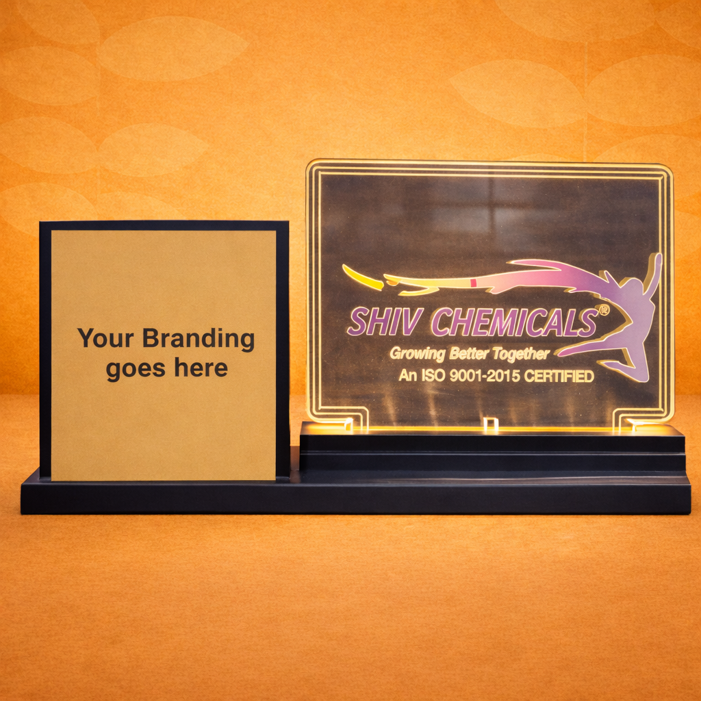 Elevate everyday workspaces with this sophisticated Wooden Pen Stand featuring an LED-based Transparent Acrylic Photoframe. Designed to blend functionality with modern elegance, this desk accessory allows your brand to shine — quite literally. The illuminated acrylic frame enhances logos, achievements, or brand messages with a subtle glow, making it a striking addition to executive desks and corporate environments.